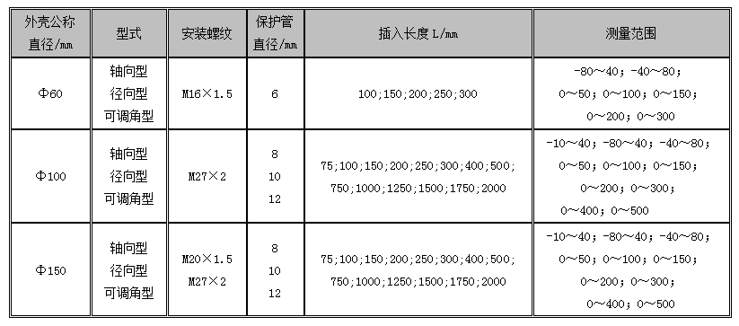 直型(徑向型):指針盤與保護管成平行方向的連接。