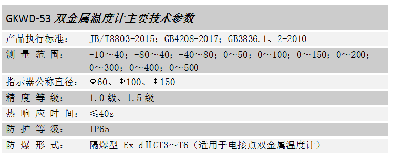 GKWD-53雙金屬溫度計是由兩種不同膨脹系數(shù),彼此牢固結(jié)合的金屬作為感溫元件的接觸式直讀溫度儀表,適合測量中、低溫,現(xiàn)已成為溫度就地指示儀表的理想選擇。