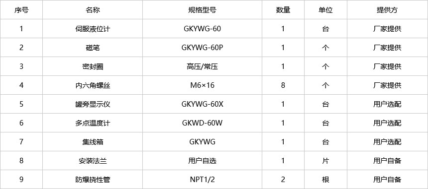 GKYWG-60伺服液位計是河北光科測控設備有限公司自主研發(fā)生產的以微電子技術伺服電機驅動測量液位、界位、密度、多點平均溫度的高精度測量儀表??蓪Ρ粶y介質進行液位、界位、密度、溫度的準確測量,同時還具有儲罐平均溫度、液下平均溫度、單點溫度進行傳遞等功能,可以滿足儲罐存量管理、重大危險源實時監(jiān)控的需求。